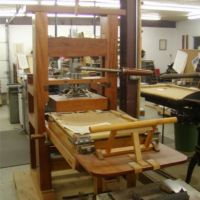 John C. Horn and Andrew Zawaski built two presses. One is in the Historic Arkansas Museum, the other one in the John C. Horn Collection of Antique Printing presses. It is a ‘Recreation of the Ramage Printing press brought west of the Mississippi River in 1819 by William Woodruff.’