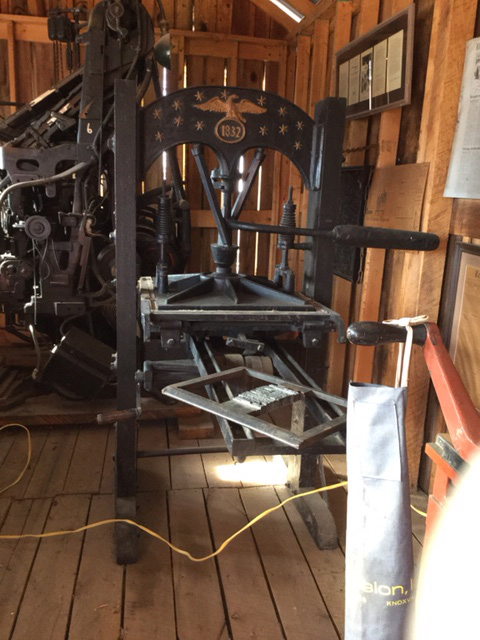 Website: ‘The Printing Office houses two printing presses. The large printing press is on permanent loan from the Methodist Publishing House. The Parthenon Press dated 1832, was shipped from Ohio on a flatboat to the Publishing House, was used until the 1960’s, when it was replaced.’