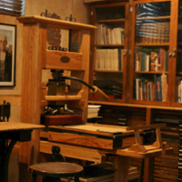 This press is an authentic replica of a 1770’s English Wood Common Press. It is modeled after the Ben Franklin press that is displayed at the Smithsonian. We contracted Steve Pratt, a noted craftsman, to custom build this press for our studio. It took Steve four and a half years to complete the project and it arrived here on July 2, 2007 – just in time to reprint the Declaration of Independence for July 4, 2007!