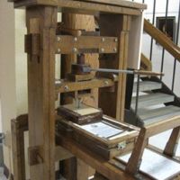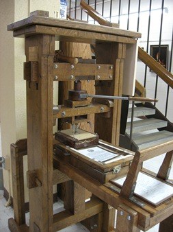 Website: “The Martin Luther College Library received this 5/8 scale model of the Gutenberg Press from its builder, Art Paquay in 2006. Johannes Gutenberg, a German goldsmith, invented the printing press, with replaceable type in 1436. The famous, Gutenberg Bible was published in September 1452, and was the first book to be published in volume. Gutenberg’s press lowered the cost of books enough to make them available to the masses, and is probably the impetus of lending libraries. The Gutenberg Press remained the standard until the early 20th century. This scale, model press, was built by Art Paquay, a New Ulm native, and assisted by Linus Guggisberg, making the screw and nut, with Kevin Schafer, providing printing cut and information.”