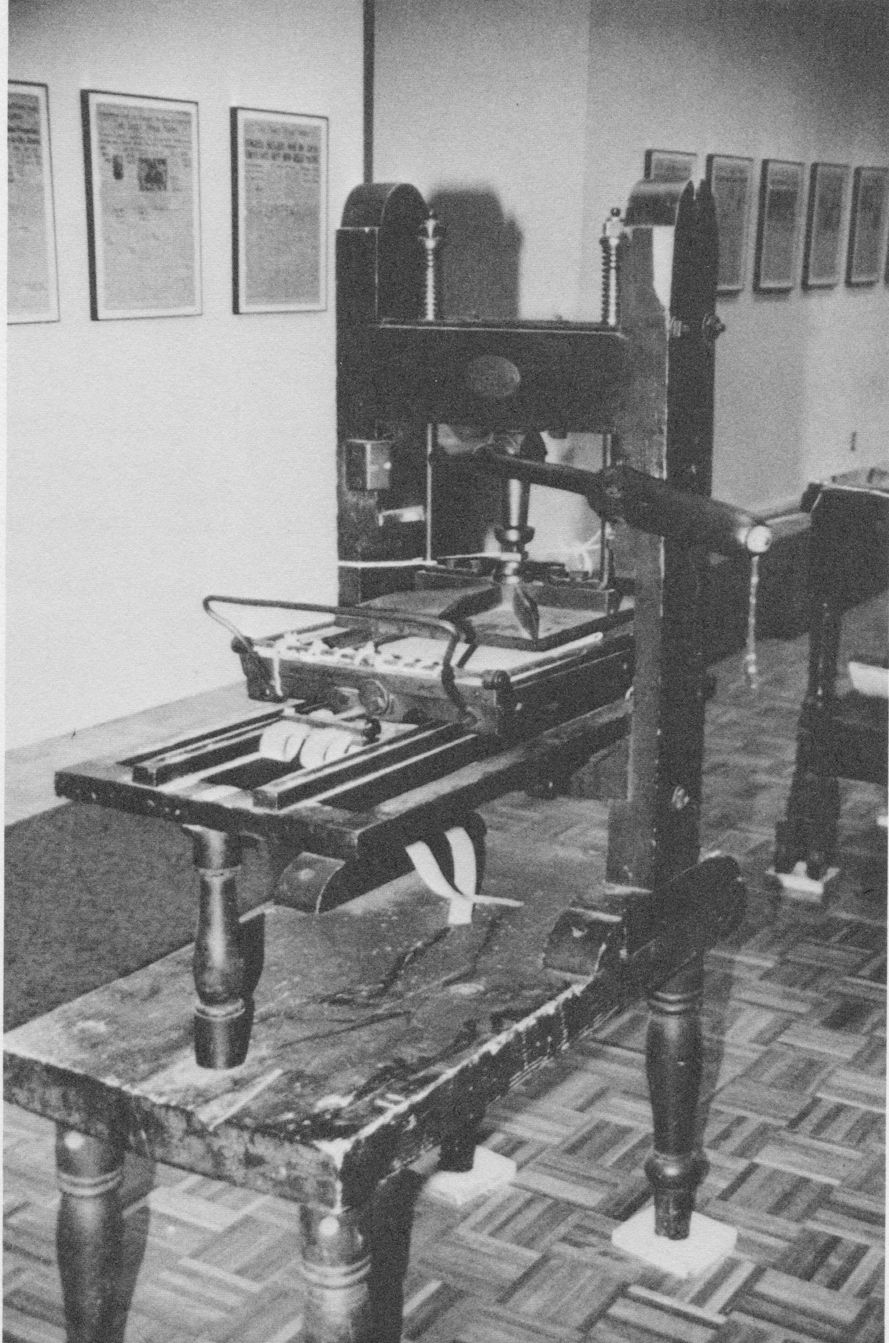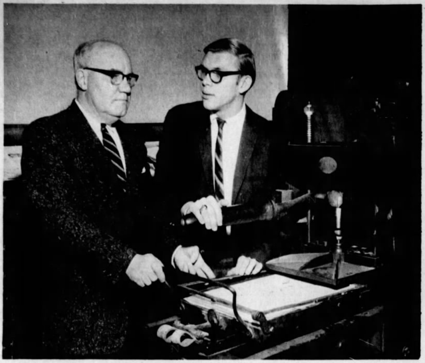The “Daily Journal” (May 26, 1966. Page 24): ‘Prof. Kenneth Q. Jennings of the Rutgers School of Journalism examines an old press with one of the most promising graduating seniors in the school, Peter Bankers. … The press they examine at the Journalism School is a Ramage Press, built between 1795 and 1800 and one of four still in existence.’
