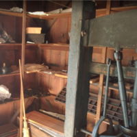 Website: “This printing press was previously identified as a Stansbury press, ca. 1820, originally from Schoharie, New York. In 2013 it was tentatively re-attributed by printing technology historian Bob Oldham as the work of George Clymer, ca. 1808-1809. If that attribution is correct, this may be the only surviving example of the trials Clymer made of different impression mechanisms before he settled, in 1813, on the design of the Columbian hand press.