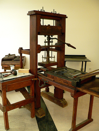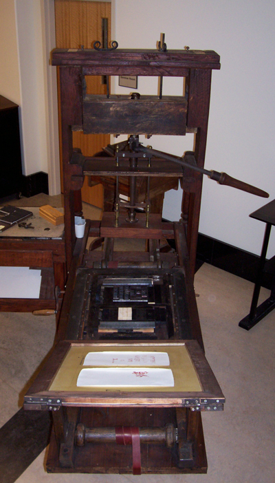 “Common press, Replica of ca 1720s. This particular press was probably made in the 1970s as a work of love by someone on the east coast; I purchased it from the man’s daughter after his death.”