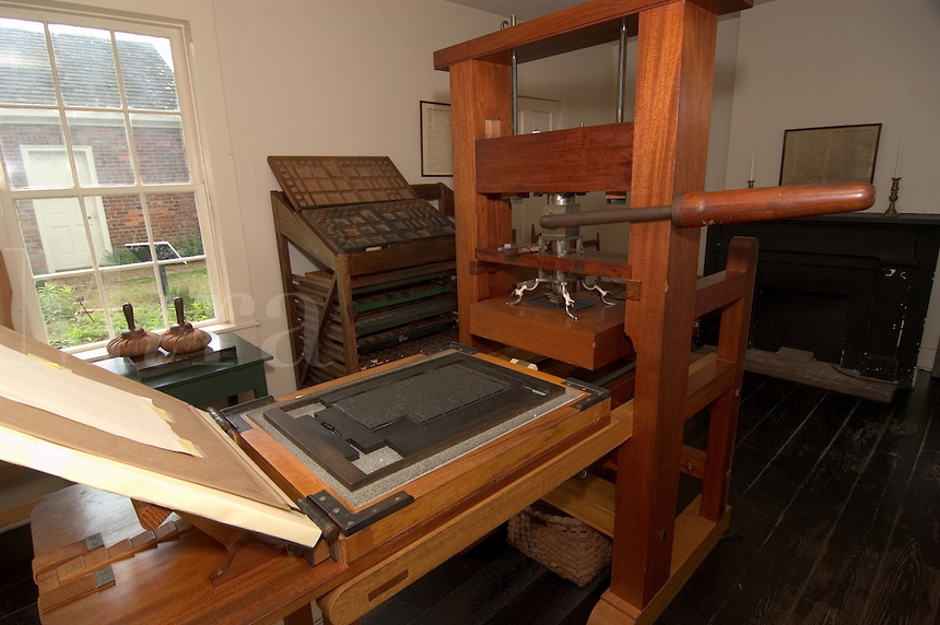Location: Historic Arkansas Museum, 200 E 3rd St, Little Rock, AR 72201. Notes: John Horn and Andrew Zawaski build two presses. One is in the Historic Arkansas Museum, the other one is since November 2021 in San Felipe de Austin State Historic Site in Texas. “Recreation of the Ramage printing press brought west of the Mississippi River in 1819 by William Woodruff.” The Arkansas Times (August 4, 2016): “Across the block, in the upstairs of a brick building meant to be a representation of the circa 1824 print shop of Arkansas Gazette founder and printer to the Arkansas Territory William Woodruff, stands another project that consumed Zawacki’s craft and passion for over a year: a huge wooden press he built from oak and cherry, copying an original he found in Vincennes, Ind. Featuring Zawacki’s artful woodwork and metal parts fabricated by Stone County Ironworks in Mountain View and Central Machine Shop in Little Rock, the press is period-correct in every detail, and has actually been used on occasion for demonstrations and to do short runs of handbills and other printed goods.” John Horn wrote (March 6, 2016): “Here the story of their creation. At one time I was a volunteer at the museum with includes a couple of early Little Rock buildings and several reproductions of early buildings. Included in the buildings, was a representation of the second printing office in Little Rock and where I occasionally demonstrated printing. The press the museum had at the time was a St. Louis Type Foundry Washington press dating from the mid-1800s. Literature: . Photographs: medium size. Clicking enlarges in new window.
